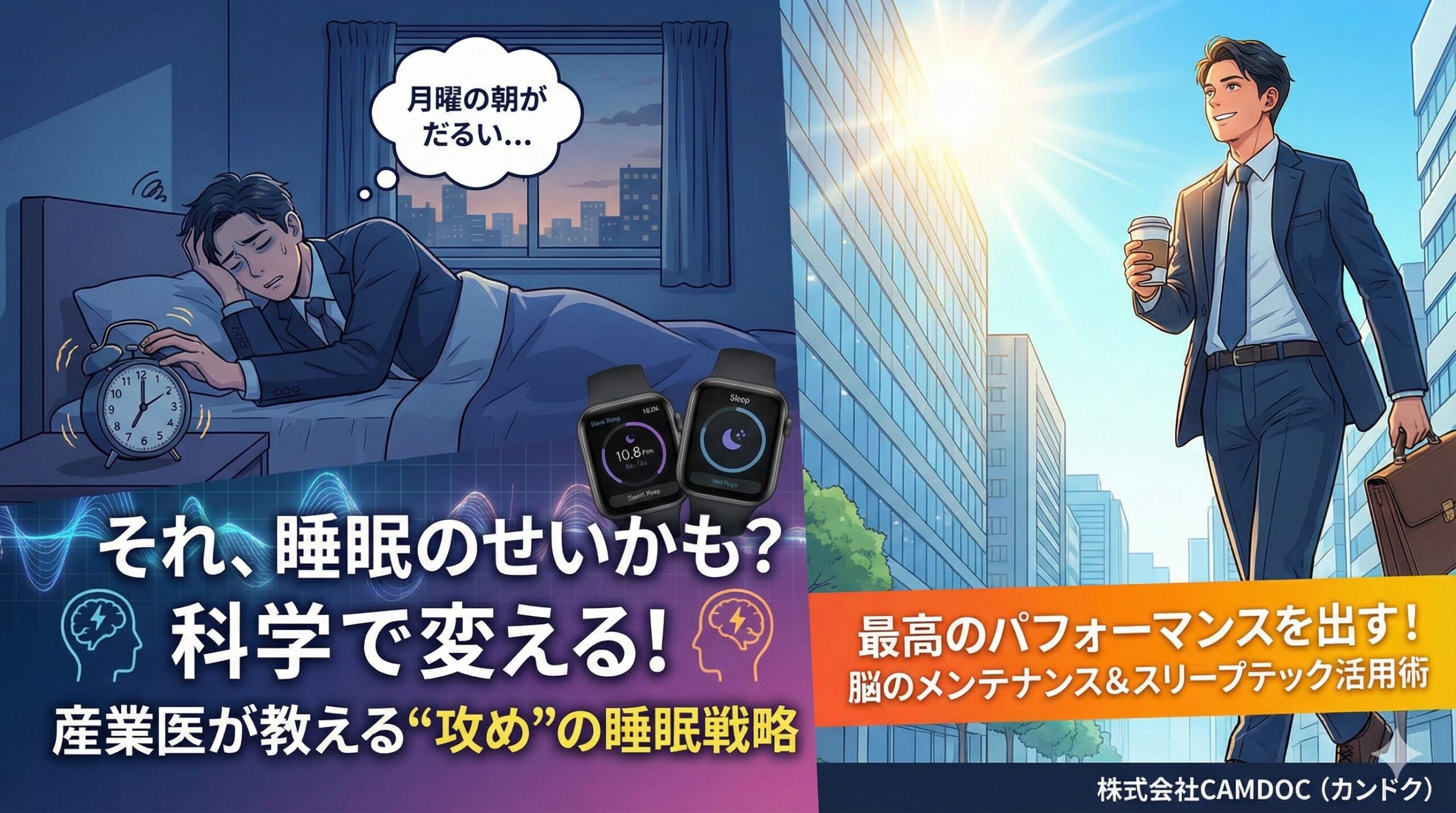 今回は、私たち産業医の視点から、根性論ではなく**「科学的な技術(スキル)」**としての睡眠戦略をお伝えします。明日からのパフォーマンスが変わるヒントが満載です!